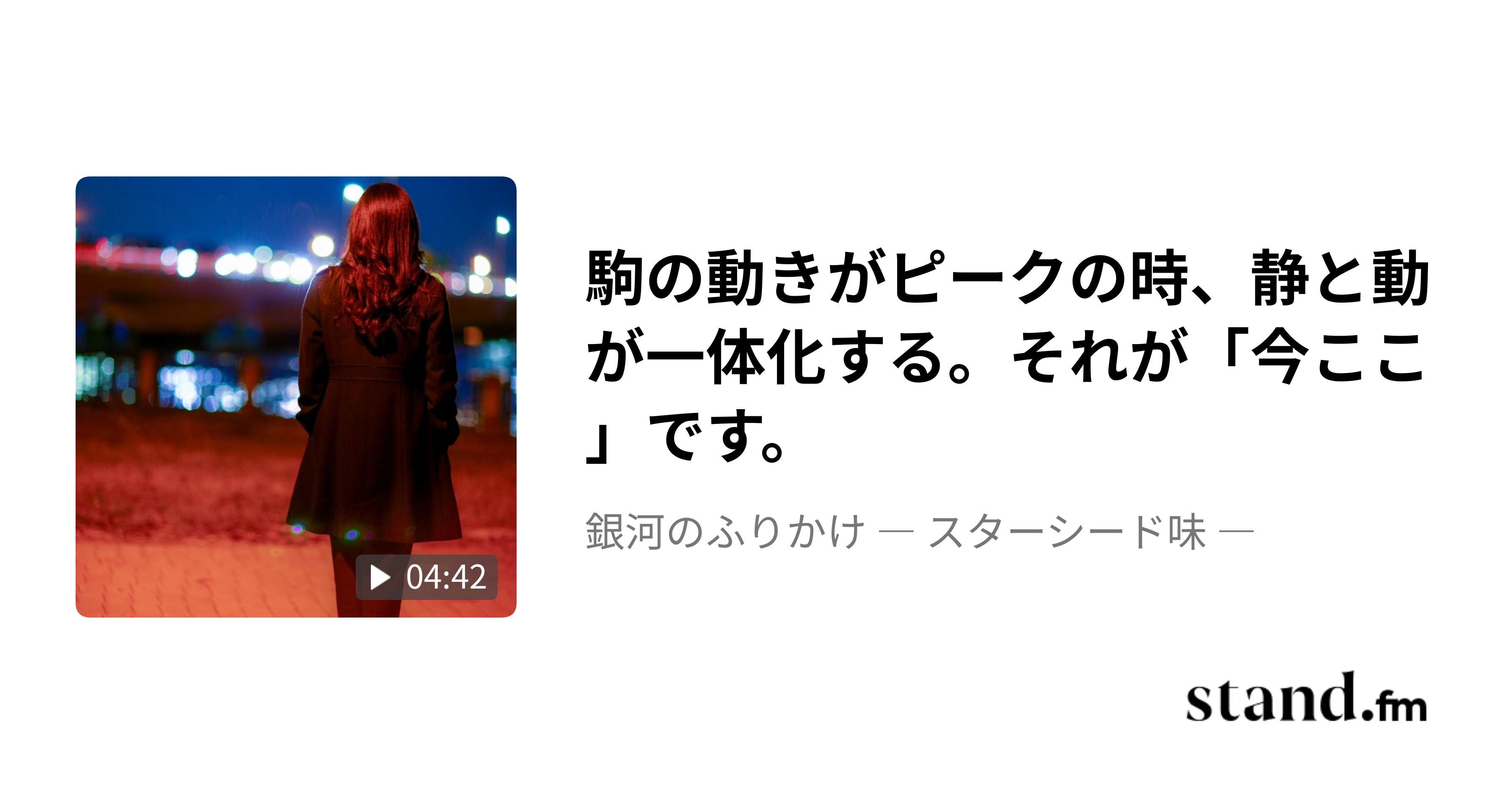 駒の動きがピークの時、静と動が一体化する。それが「今ここ」です。 - 銀河のふりかけ ― スターシード味 ―... 🛸スターシード向けセッション🛸 ⭐銀河からのダウンロード バースライトオブギャラクシー https://lyra-sanctuary.com/bog/ ⭐テンプル オブ ヴァジャイナ https://lyra-s...